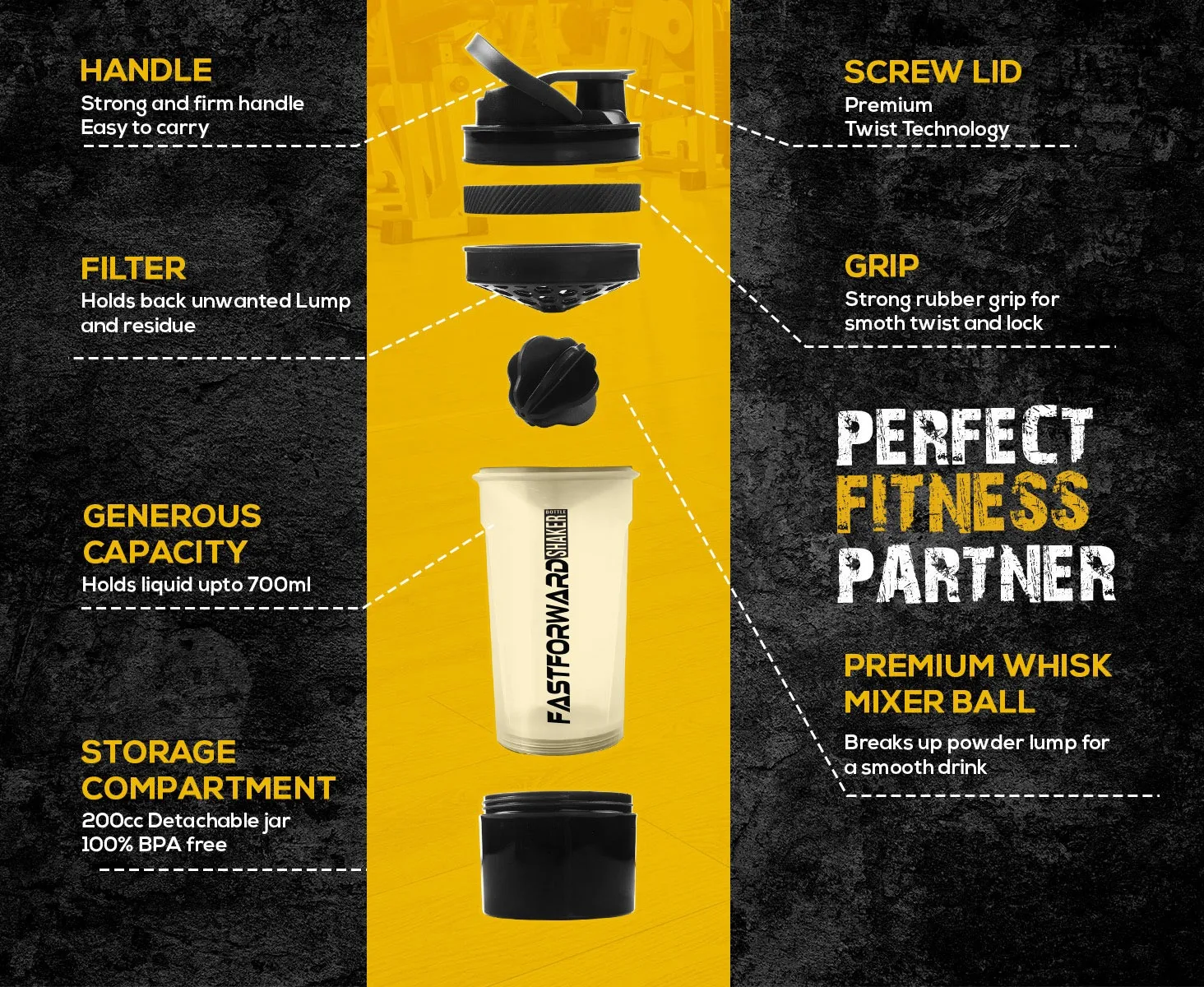Upgrade your hydration and nutrition routine with the Fast Forward Shaker Bottle Pack of 1—your perfect partner for staying refreshed and energized!